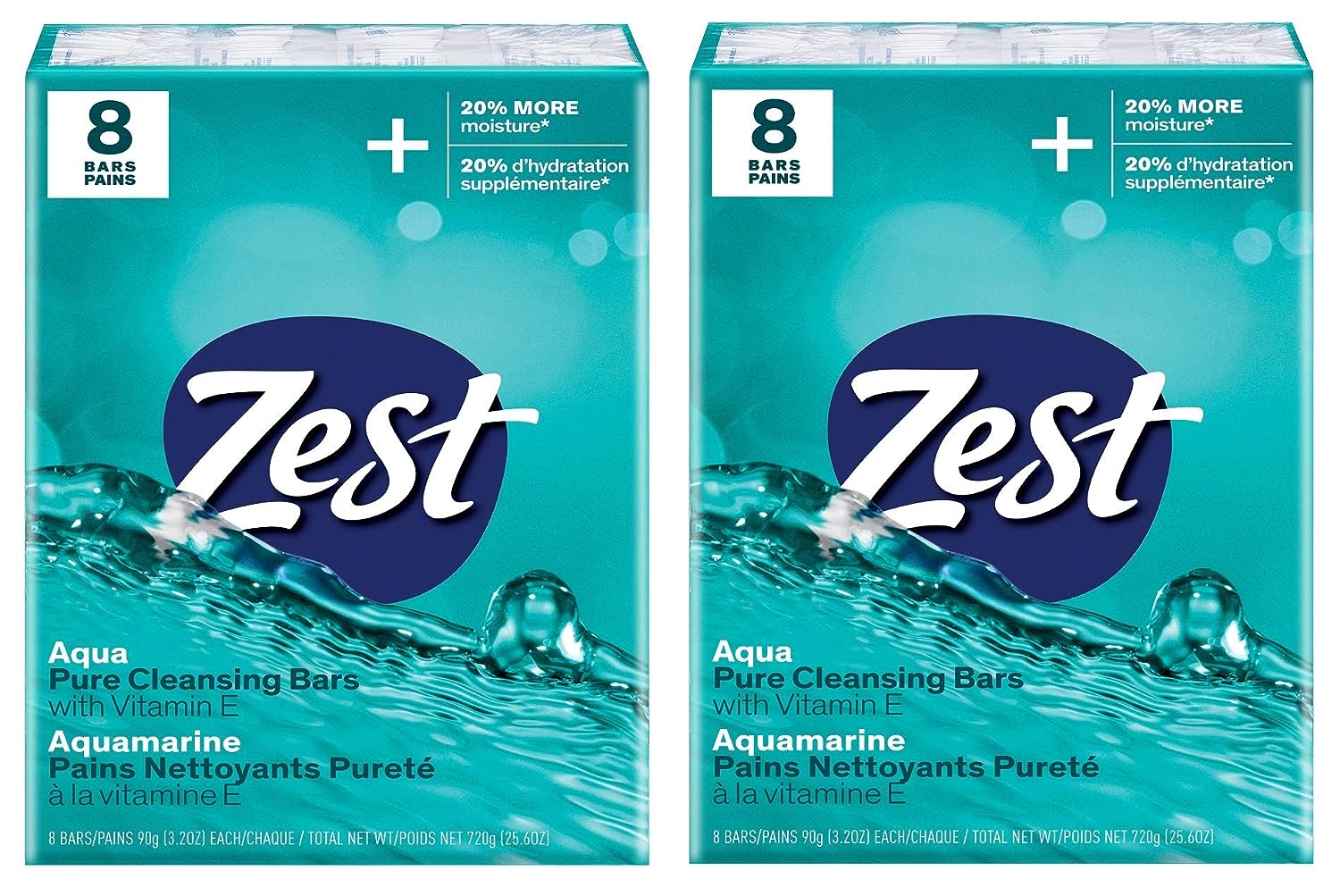 Zest Aqua Pure Cleansing Bar Soap 20% More Moisture 8 Count Pack of 2